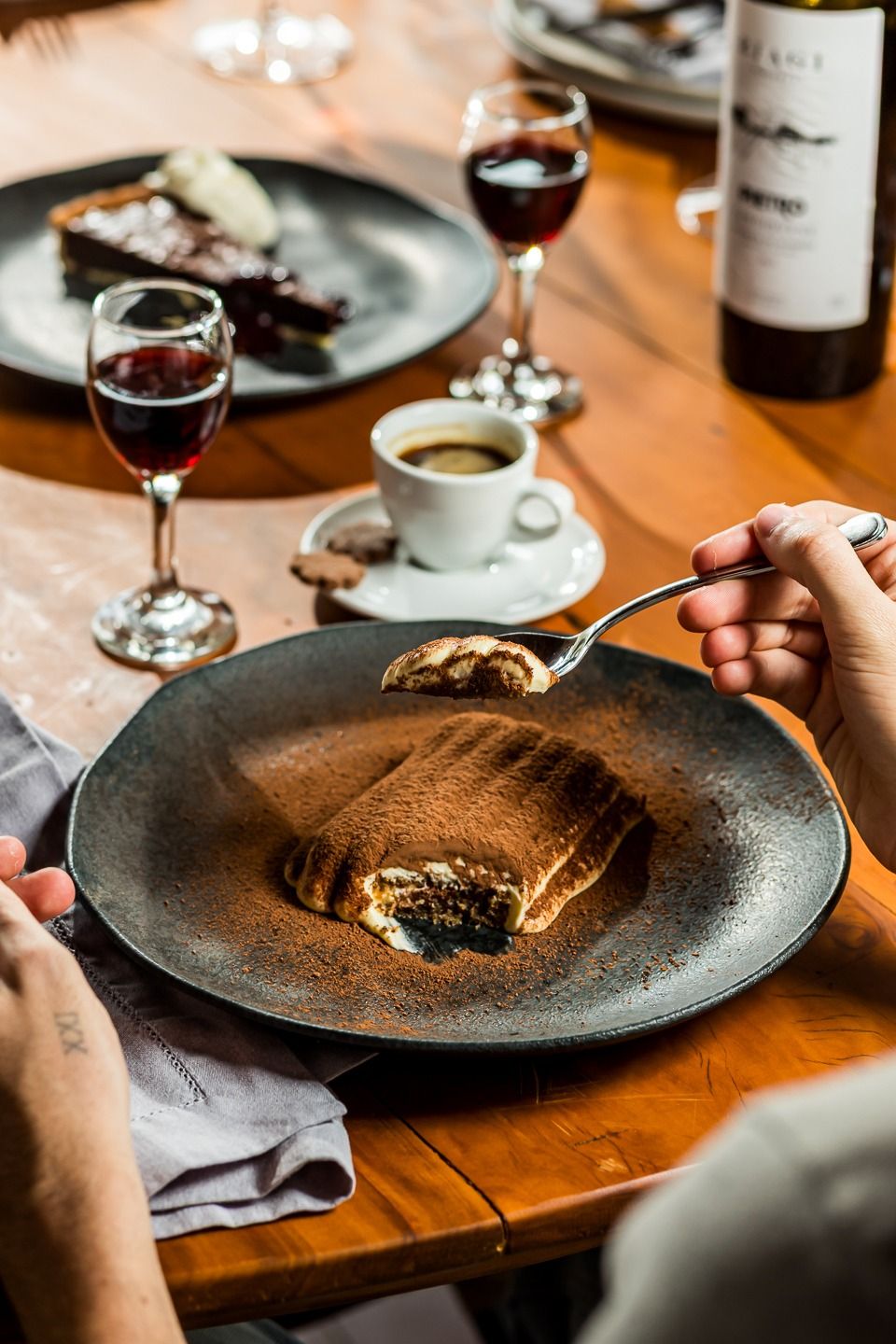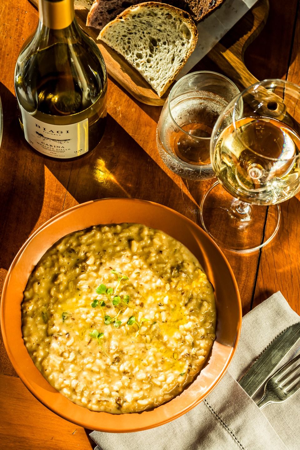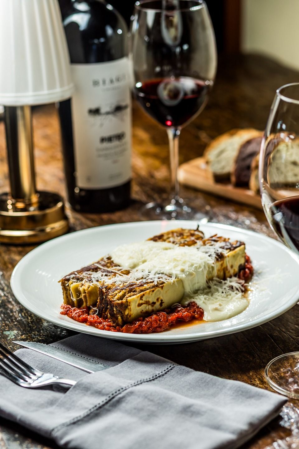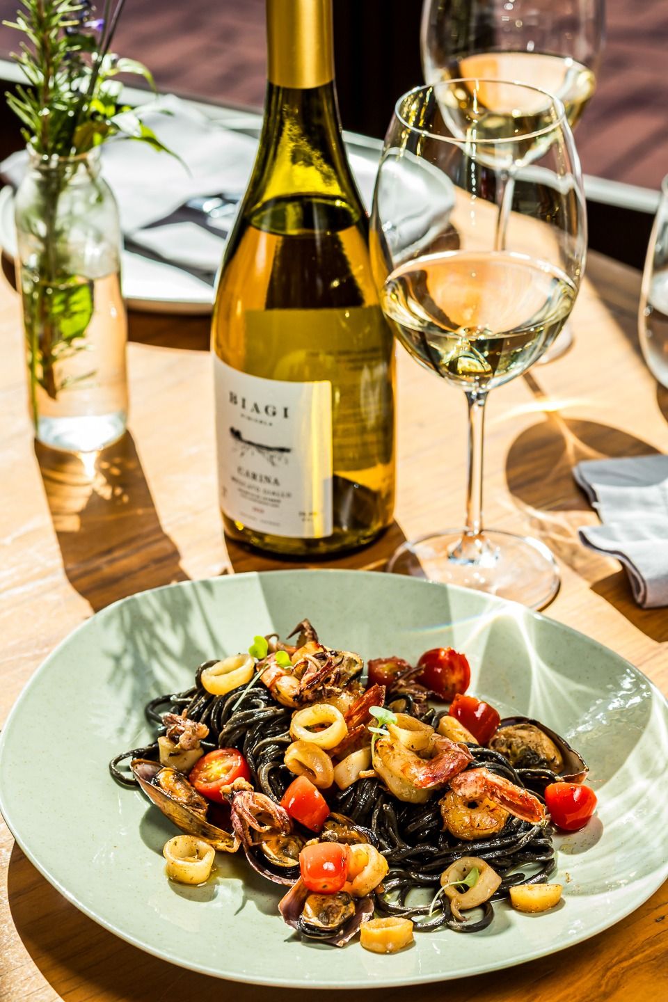 A nossa Osteria está localizada em meio aos nossos vinhedos. É ali que todos podem desacelerar, com as vistas para nossas colinas, lagos e jardins, provando nossos pratos junto dos vinhos que produzimos.
